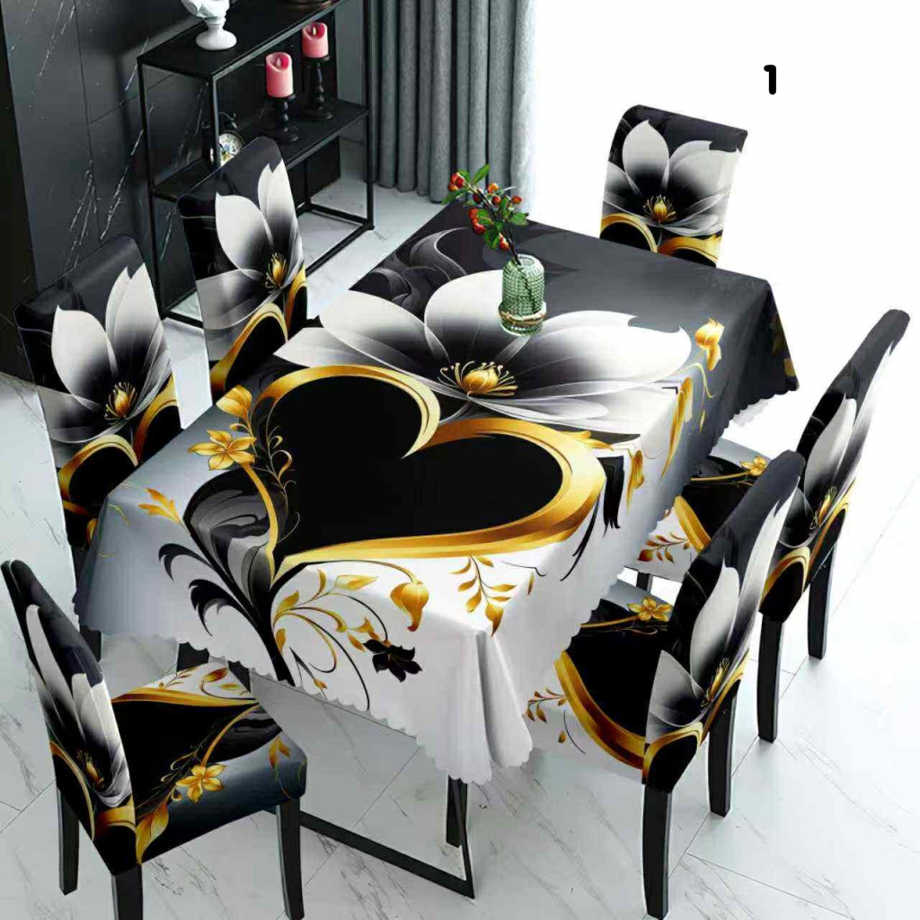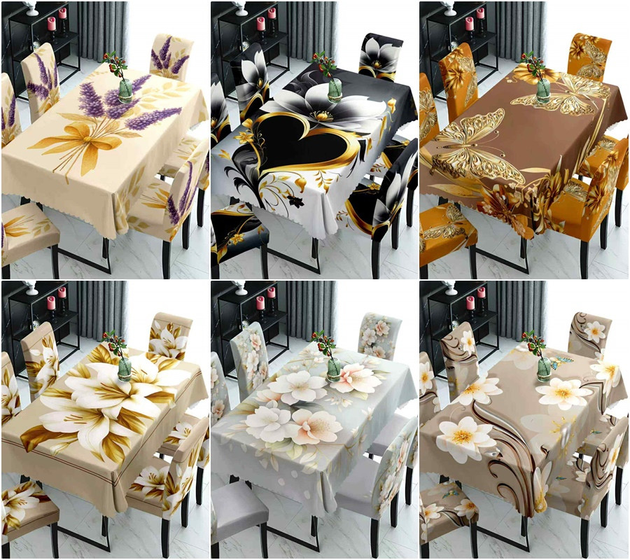 1 db asztalterítő 6 db székhuzattal - több színben/Gyönyörű mintákkal