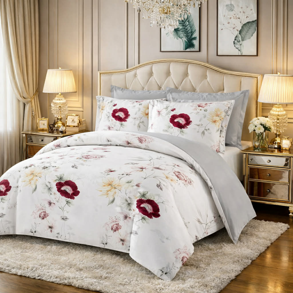 Főbb jellemzők: • Finom, elegáns virágminta • Világos, nyugtató színvilág • Puha, bőrbarát anyag • Tartós, színtartó nyomat • Könnyen kezelhető, mosható • Modern és klasszikus hálószobába is illik