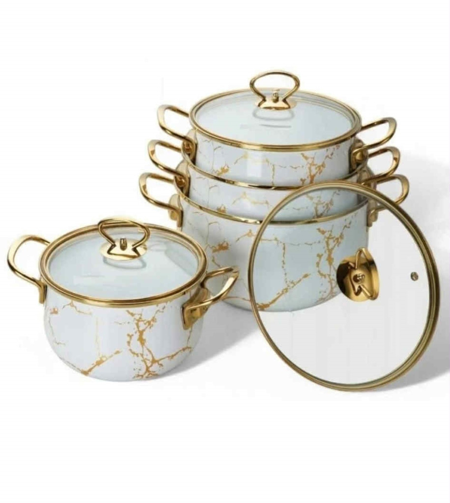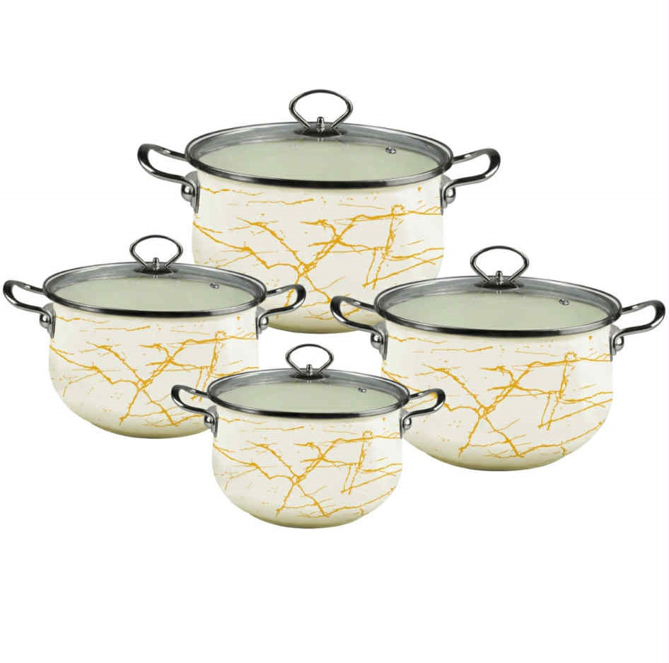 Edenberg EB-9102 Zománcozott edények 8 db, fehér edénykészlet arany márvánnyal