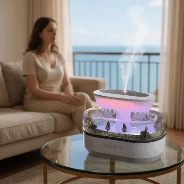 A nyári eső finomsága ihlette ezt a dizájnos párásítót, amely a levegő szokásos páratartalmát a természet látványává alakítja át: