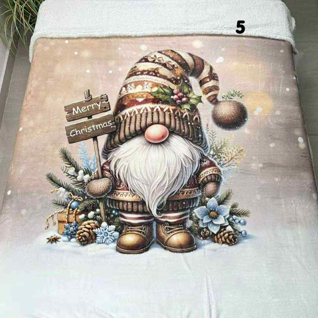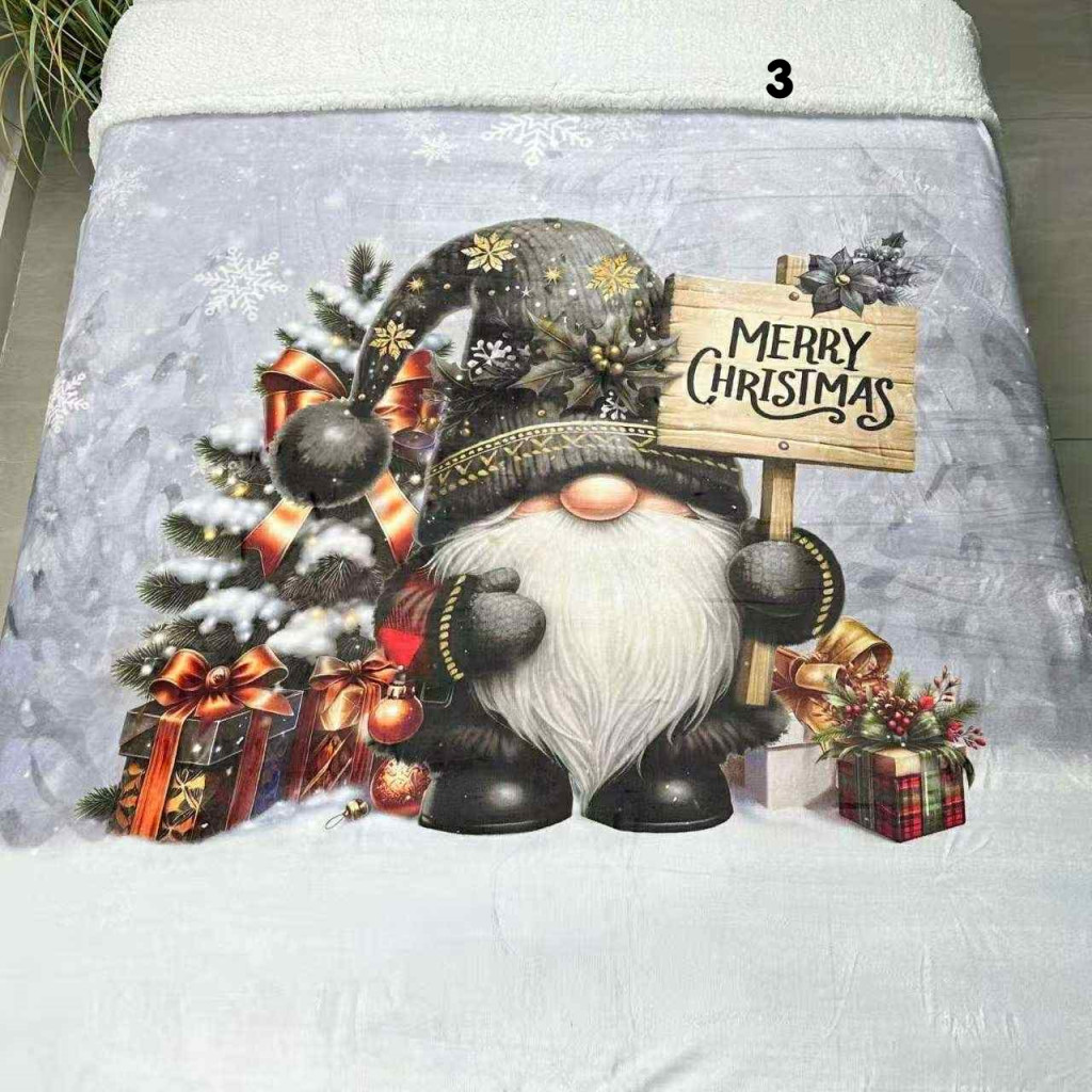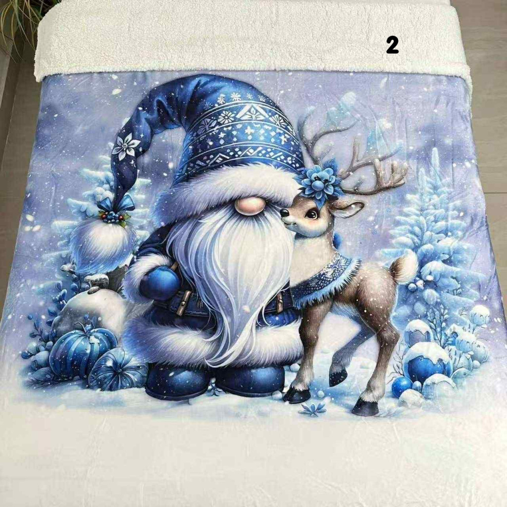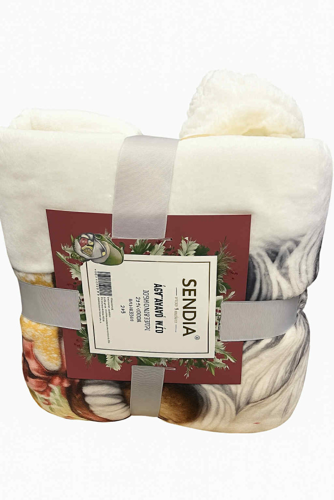 A pléd egyik fele teljesen az adott mintás, másik fele fehér színű "bundás"
