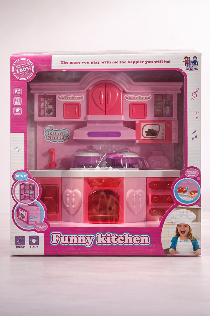 A Funny Kitchen egy vidám, rózsaszín játékkonyha, amely tökéletes választás a szerepjátékot kedvelő gyerekek számára. A készlet aranyos részletekkel, szívecskés ajtókkal és modern konyhai elemekkel készült, hogy még élvezetesebb legyen a játék.